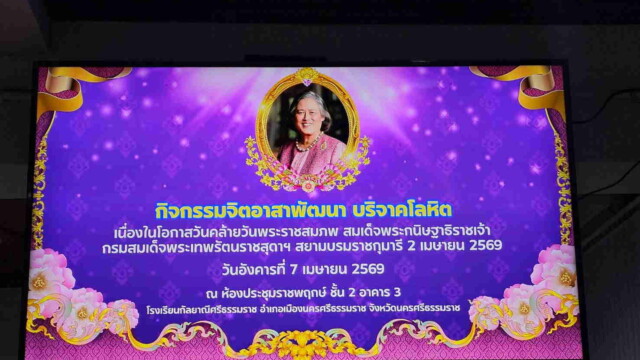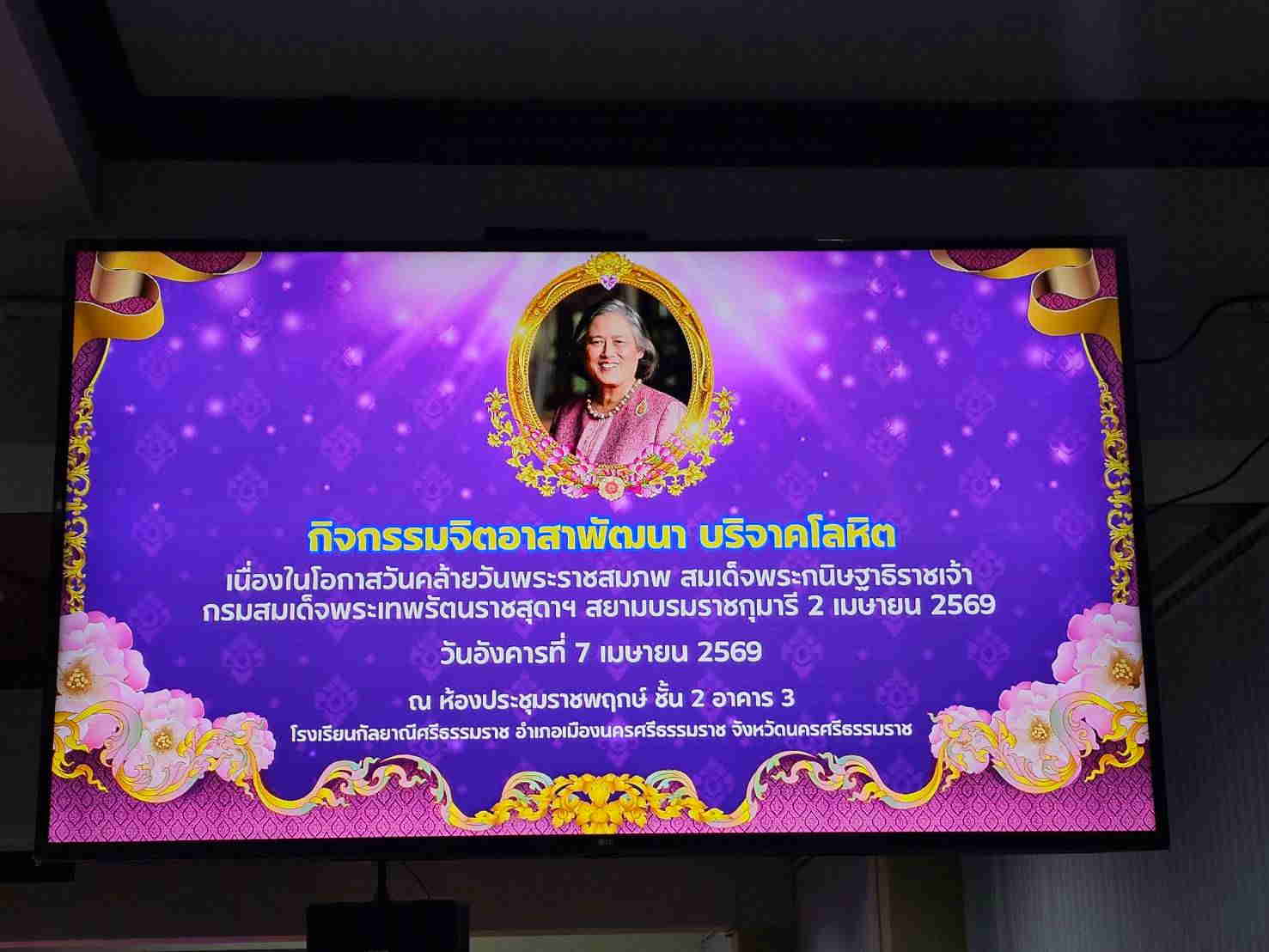 พ.อ. วิชาญ สาริกะพันธ์ รอง ผอ.รมน.จังหวัด น.ศ. (ท.) ร่วมสนับสนุนแผนการบริจาคโลหิต เนื่องในโอกาสวันคล้ายวันพระราชสมภพ สมเด็จพระกนิษฐาธิราชเจ้า กรมสมเด็จพระเทพรัตนราชสุดาฯ สยามบรมราชกุมารี 2 เมษายน 2569 อนุมัติให้กำลังพลฯ ที่มีร่างกายสุขภาพแข็งแรงเข้าร่วมบริจาคโลหิต เพื่อช่วยเหลือผู้ป่วยในโรงพยาบาลมหาราชนครศรีธรรมราช และโรงพยาบาลใกล้เคียง โดยมิคิดมูลค่าใดๆ ทั้งสิ้น
